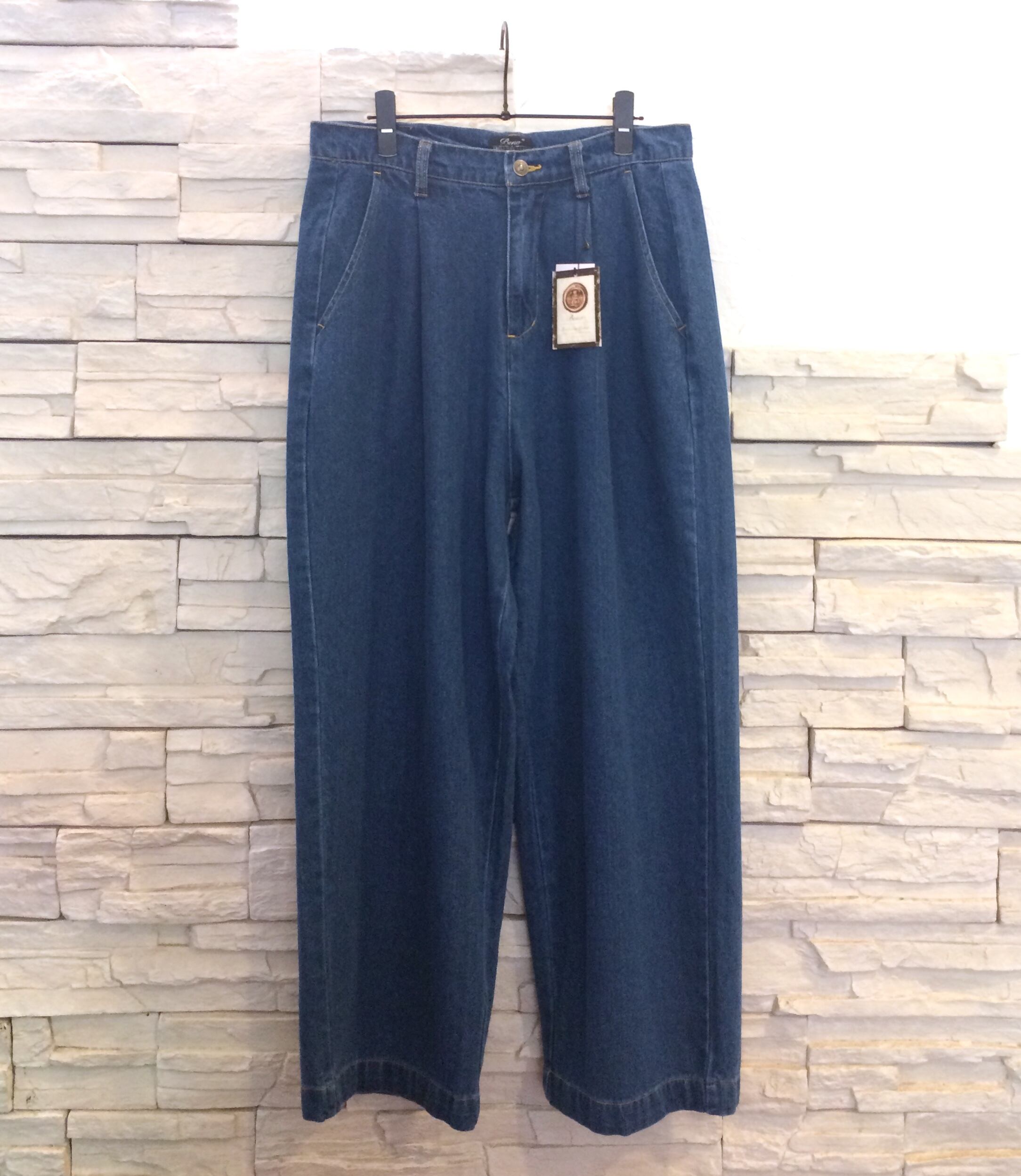 ゆったりとしたワイドシルエットが特徴の1タックバギーパンツです。やや裾にむかってテーパードの効いた程よい上品さを漂わせるワイドシルエット。コットン100%のデニム生地を使用し、丈夫でしっかりとした仕上がりになっており、長年着やすい10oz生地を採用しています。トレンドのストリートスタイルをはじめ様々なスタイルに合わせやすいオススメの1本です。