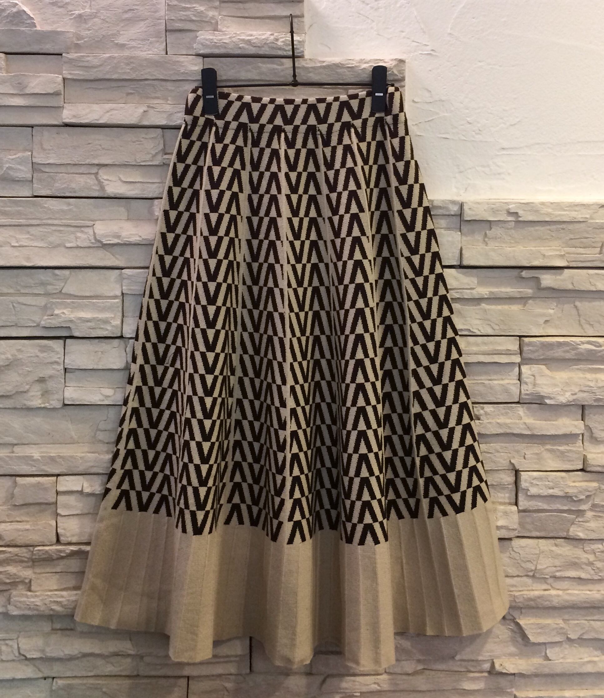 柄ニットプリーツスカート