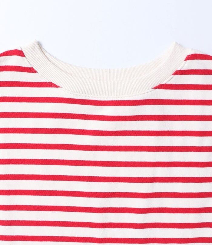 Hunch 綿xリサイクルポリ裏毛ボーダーバルーン袖プルオーバー