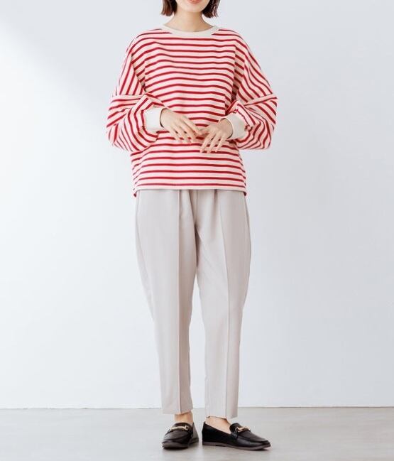 トレンドの袖幅たっぷりボーダープルオーバーで一足先に春気分を。