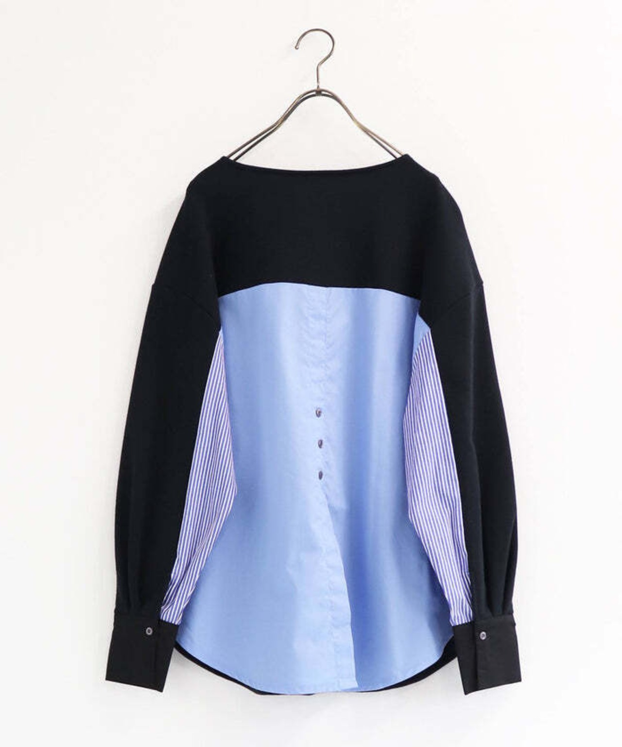 後ろ姿にこだわりのドッキングプルオーバー。ベーシックなカラーに、シャツを組み合わせたようなプルオーバーは一枚でサマになるデザイン。