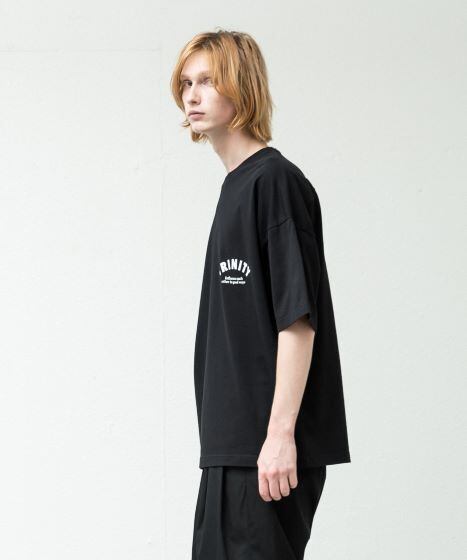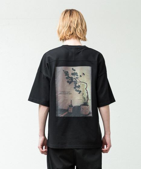 綿100%のMVS天竺を採用し、ピリングが少なく上品な印象を持ったドロップショルダーのプリントTシャツ。ゆったりとしたドロップショルダーシルエットで、しっかりとした生地感で一枚着でも存在感のある一着。 素材 : 綿 100%