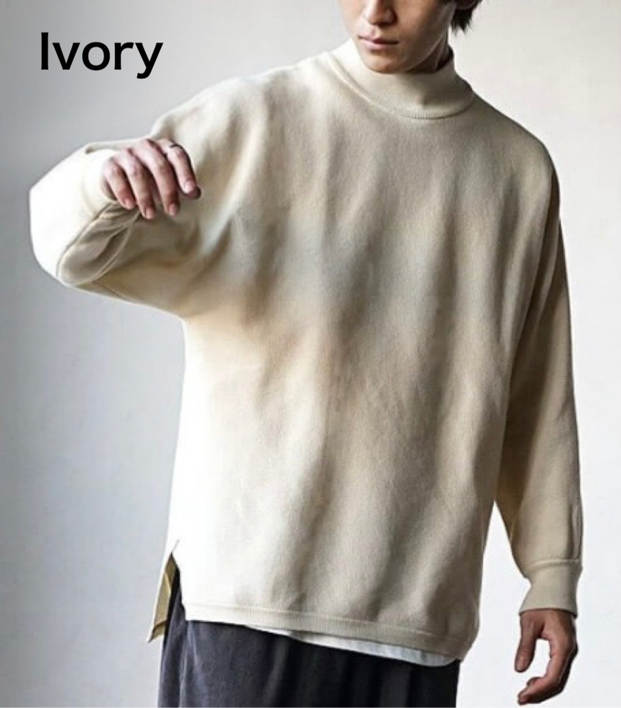 サイドスリットミラノリブオーバーサイズモックネックニット